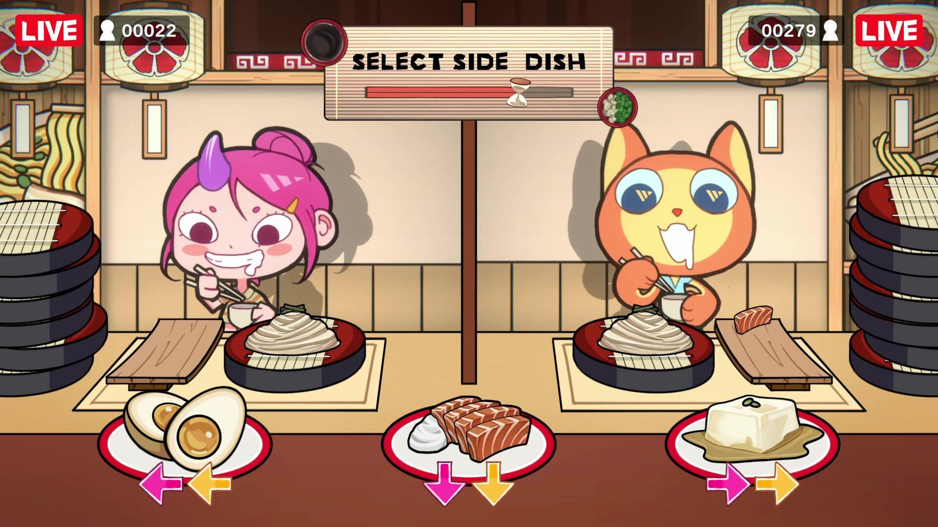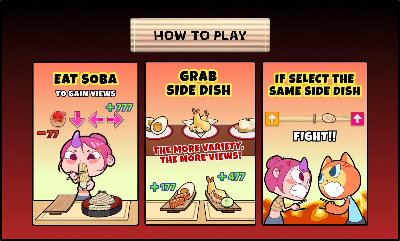 You decided to live mukbang from a popular soba restaurant, but your plan goes wrong when your rival channel shows up here to live mukbang too!Eat soba with speed, precision, and style to attract viewers and outshine your rival who shamelessly tries to steal your spotlight!!