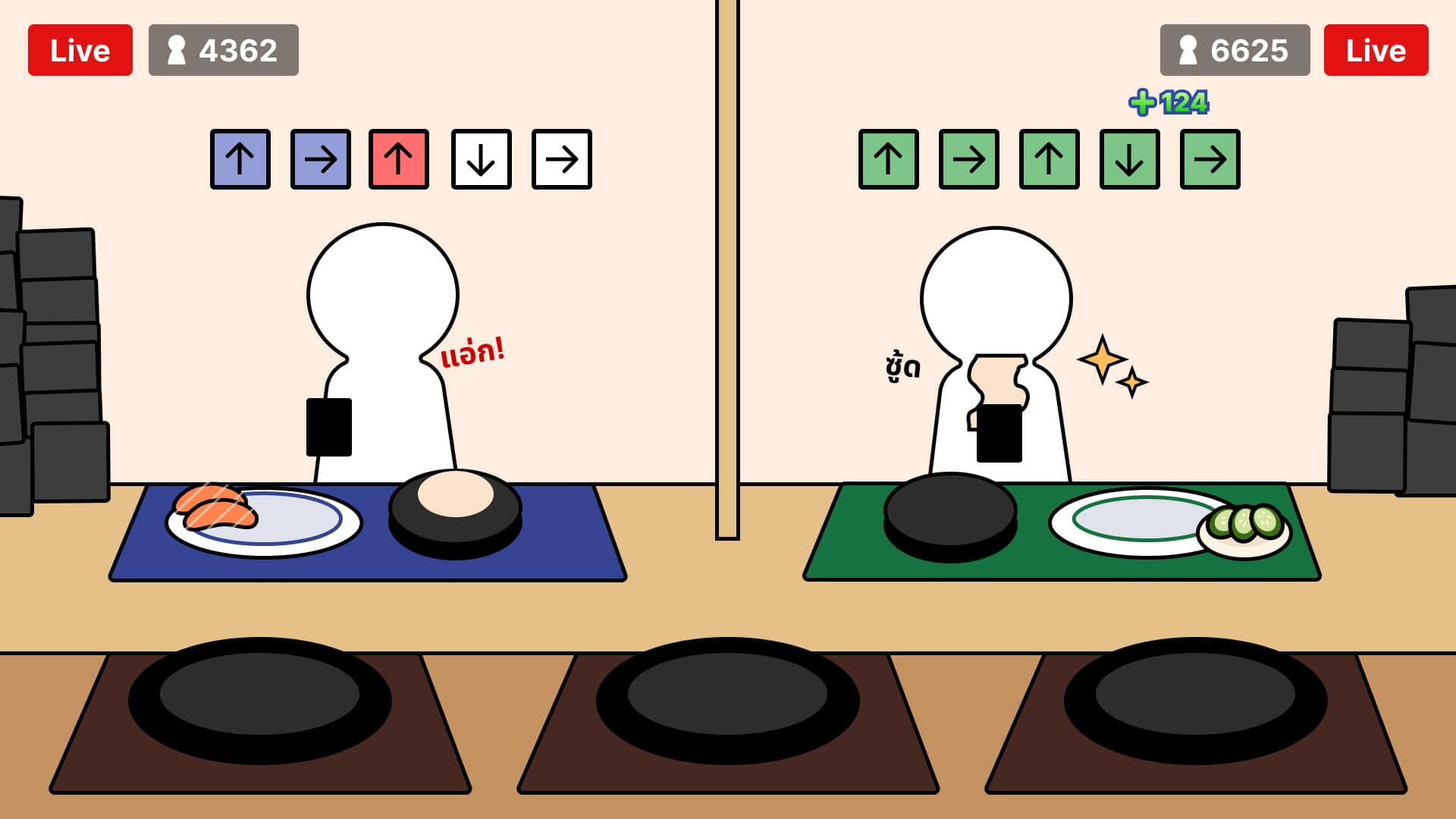 Beyond the core rhythm gameplay, I designed a chopstick fight mini-game for enhancing PvP experience, plus a side dish bonus system for competitive depth.