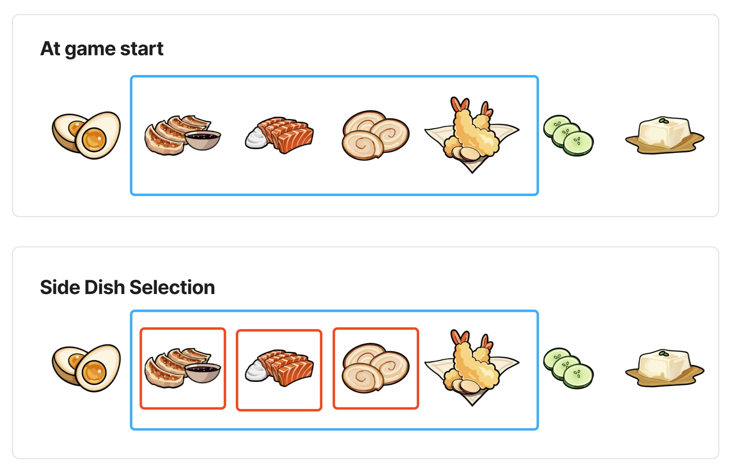 Selecting the same dish triggers a chopstick fight; the winner gets the dish.