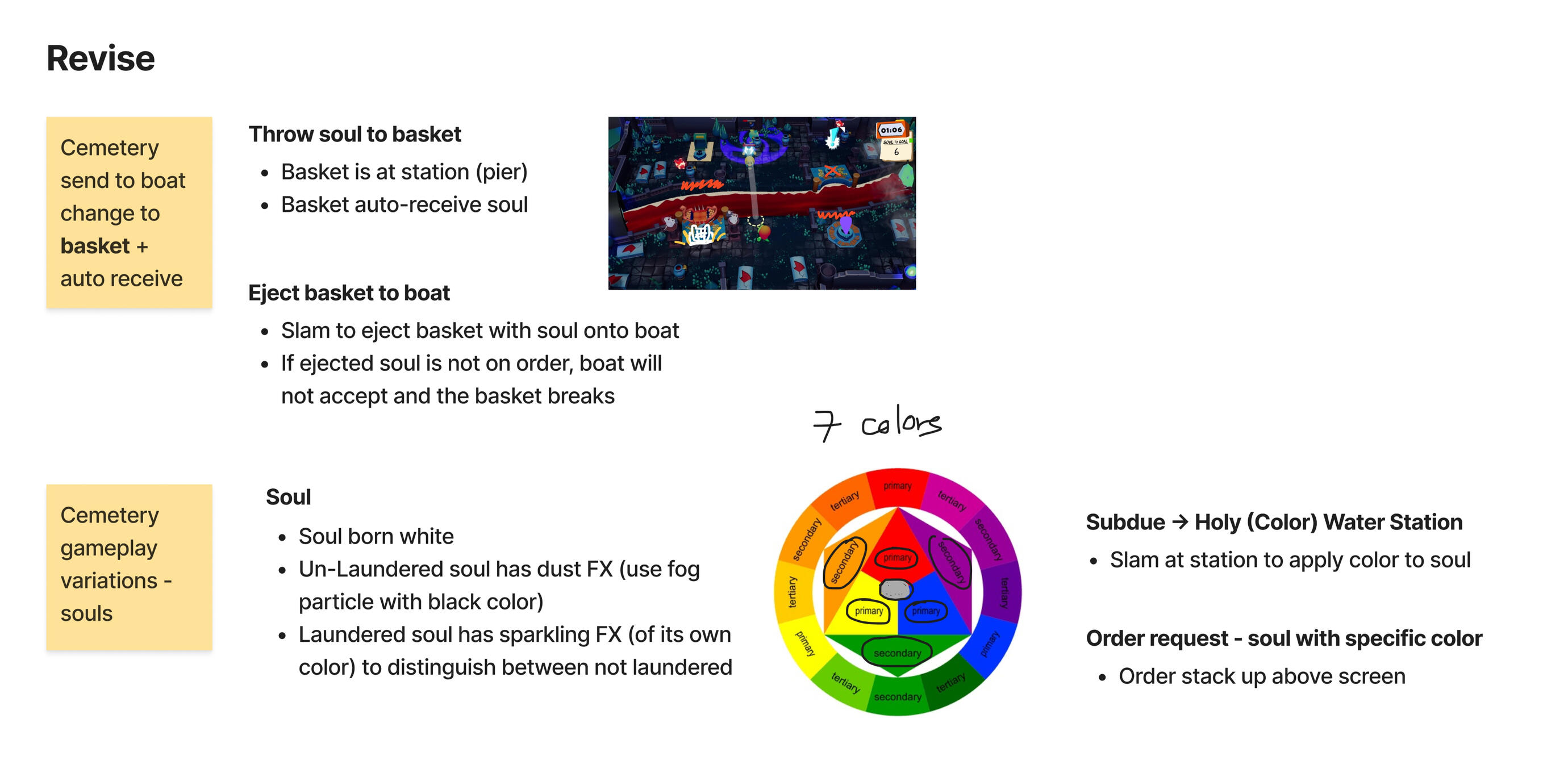Since our game already featured vibrant soul colors, I thought of applying CMYK color mixing, so souls could require 1, 2, or 3 color mixes.
