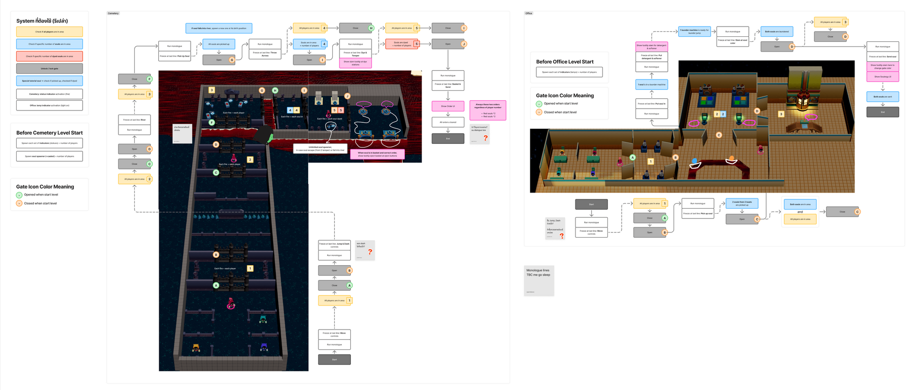After level design was completed, we collaborated with artists to create game assets and programmers to implement mechanics.